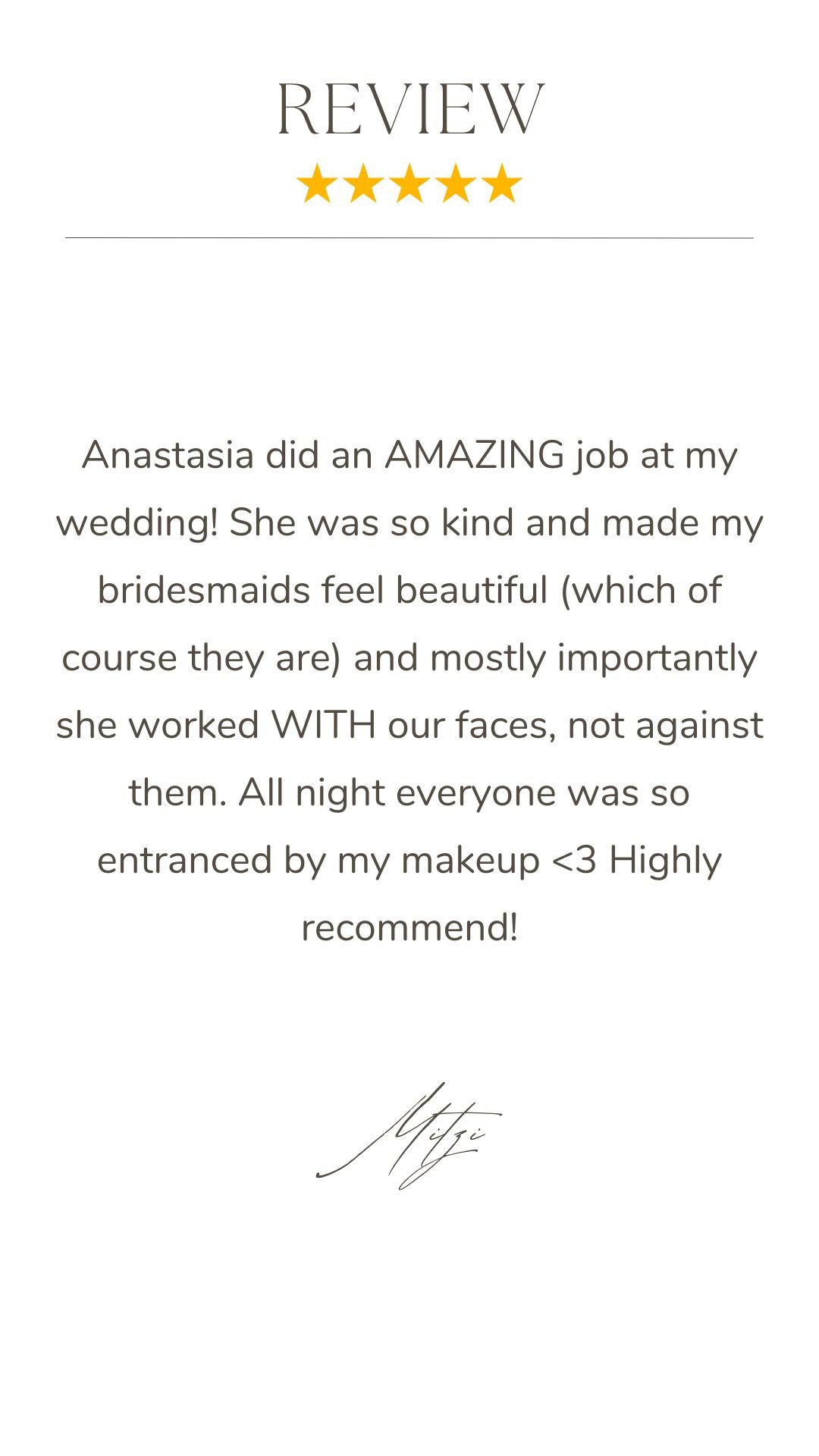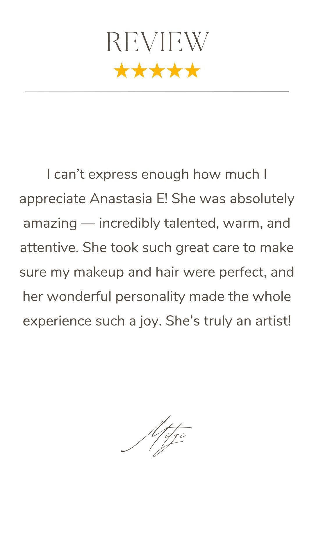 Anastasia has 10+ years working in beauty industry and 5+ years working with brides. Her mission is to enhance the natural beauty of every bride by providing expert beauty services. She specializes in stunning looks that highlight each individual's unique features and personality. Her goal is to make every bride feel confident, beautiful, and radiant on their special day.